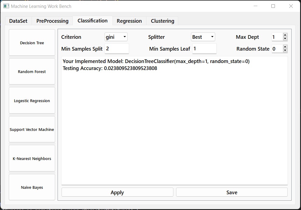Recently, users have to use one platform to preprocess their dataset and then another to apply machine learning algorithm, that too after understanding the complex mathematics and application standards of each algorithm. To simplify this, we developed and designed the system where all the aforementioned modules can be done through common interface. The system will be free to use and can be used by technical as well as nontechnical users.