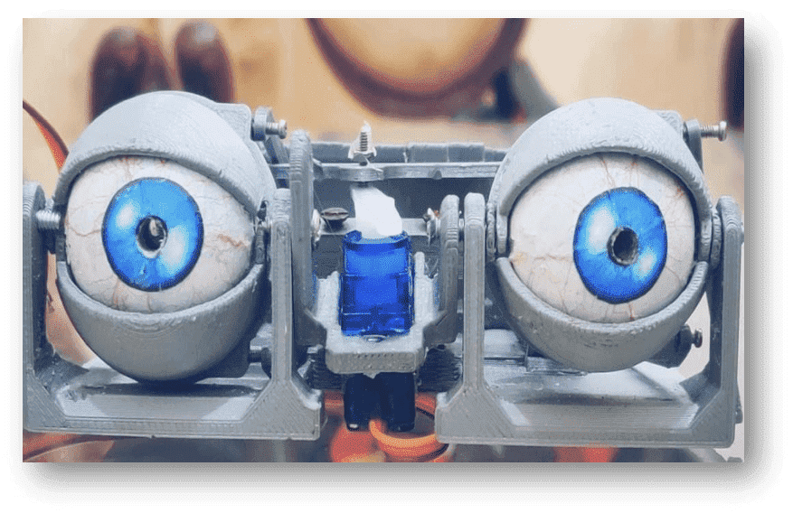 The Smart Animatronic Eyes project aims to deliver a groundbreaking outcome by revolutionizing object detection and tracking capabilities. By combining cutting-edge AI algorithms with high-resolution cameras or sensors, the system mimics human eye functionality, enabling unparalleled sophistication in perceiving and monitoring objects within its field of view. With real-time object detection and dynamic tracking, the project envisions a transformative impact in various domains, including security, robotics, and autonomous systems, advancing the boundaries of visual perception and intelligence.