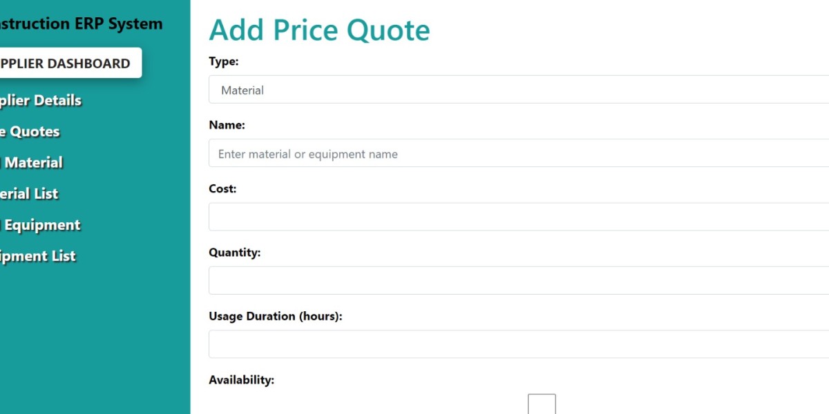 Outcome: The Construction ERP System offers several outcomes that can significantly enhance the efficiency and effectiveness of construction project management. Smooth Project Management: Everything related to the construction project, like budgeting, scheduling, and communication, gets organized in one place, making it easier for everyone involved to know what needs to be done and when. Better Cost Control: The system helps keep track of expenses and income in real-time, so there are fewer surprises when it comes to money. This means fewer chances of going over budget and more opportunities to make a profit. Faster Project Completion: With clear schedules and efficient communication, projects tend to finish on time or even ahead of schedule, which is great news for everyone involved. Clear Communication: Client and Contractor can easily see how the project is progressing and can talk to each other within the system, reducing misunderstandings and making sure everyone is on the same page. Better Organization: The system helps keep everything related to a construction project in one place, making it easier to manage. Smooth Buying Process: Makes it easier to buy materials by connecting contractors and suppliers, ensuring things arrive when needed.