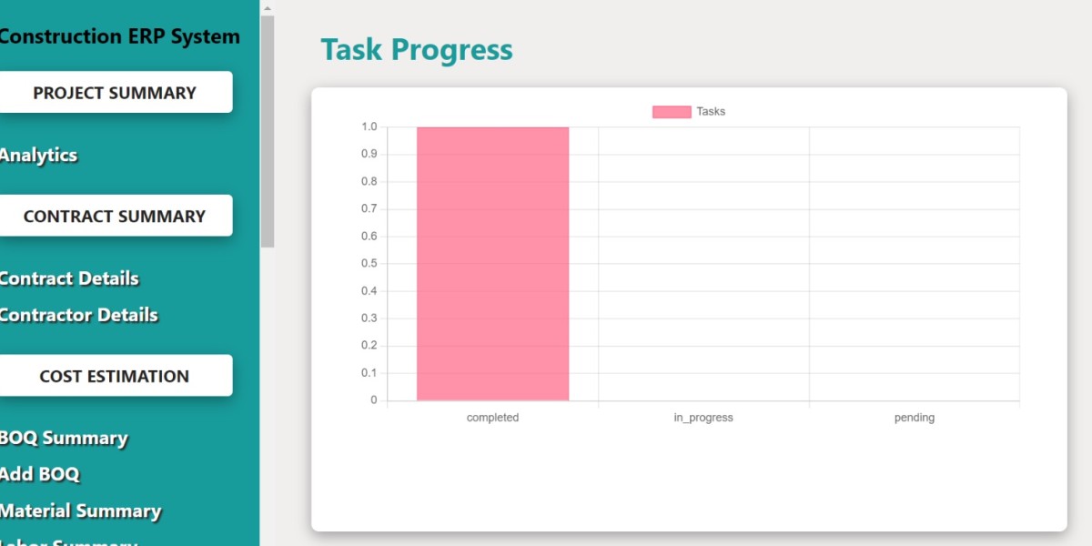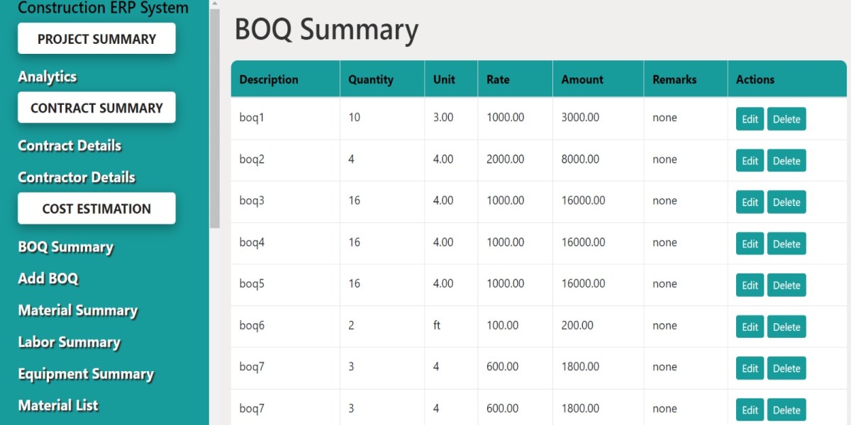 objectives: • Enable accurate project estimation through meticulous tracking of material, labor, and equipment costs. • Ensure precise project cost calculations aligned with the Bill of Quantities (BOQ). • Facilitate transparent financial management, tracking expenses, • Efficiently plan and schedule construction activities using Critical Path Method (CPM), ensuring project timelines are met. • Streamline procurement and supply chain management by managing supplier details and tracking responses. • Provide real-time, project analytics, and seamless communication among stakeholders