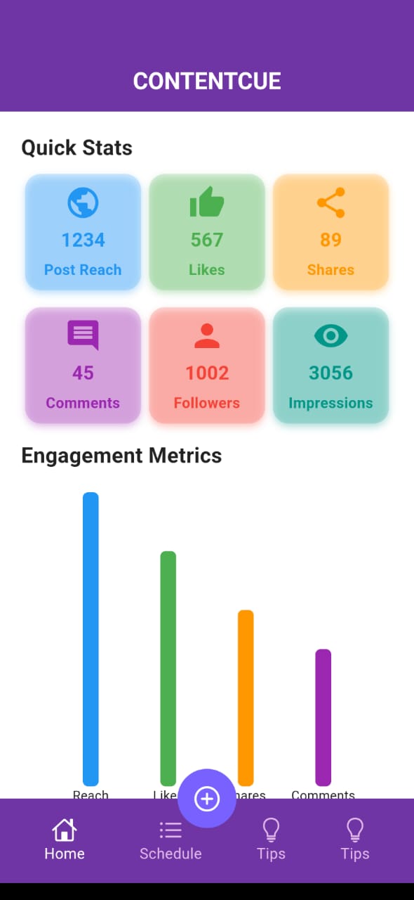 The project employs a structured methodology starting with user authentication through Firebase, where email verification is mandatory for account creation. A Facebook login option is available, ensuring users have a valid business or creator account to access the Instagram Graph API. The home screen provides three core functionalities: **Create Content**, **Smart Schedule**, and **Audience Performance Benchmark**. In the **Create Content** feature, users select a niche from a dropdown menu, triggering the Instagram API to retrieve the top 30 relevant hashtags. Based on these hashtags, Meta AI generates 3–4 posts and captions, which users can download or proceed to schedule. The **Smart Schedule** feature enables users to upload and schedule posts, leveraging cron-like jobs to automate publishing at optimal times, and offers insights on SEO, competitor benchmarking, and hashtag performance. The **Audience Performance Benchmark** provides graphical data on audience reach and demographic insights, focusing on public profiles and historical engagement trends.