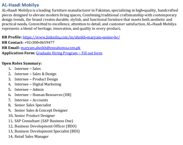 Sapphire Consulting Services is Hiring for Karachi Head Office. Apply now via email jobs@sapphire.co or Visit Sapphire.co/careers. Please mention the position in subject.