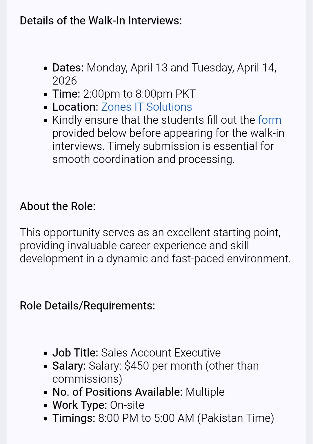 Location: Karachi, LahoreThe minimum education required Bachelors’s Degree. Agre Required: 20-28 Years.
